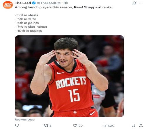 最近的三场比赛谢泼德场均25.7分钟,拿到17.7分3助攻1篮板1.3抢断0.3盖帽,命中率41.3%,三分命中率37.5%,谢泼德的战术地位正在逐渐提升当中。