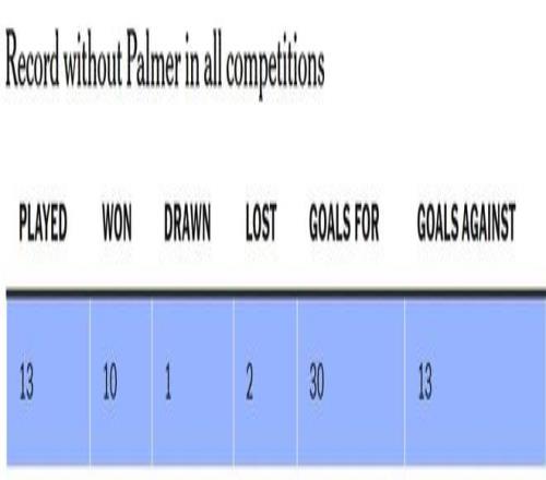 马雷斯卡的球队在没有帕尔默的情况下已经踢了13场比赛,这主要是因为他腹股沟受伤。由于左脚小趾骨折,他上周就已确定无法在对阵巴塞罗那的比赛中复出。