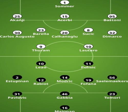 米体给出的最新首发阵容预测如上图:
