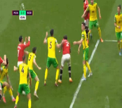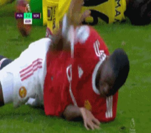 在很长一段时间里,马奎尔都是曼联这场大戏里的绝对的主角。2022年一次角球进攻中,他对博格巴下脚毫不留情,一记蝎子摆尾爆头,疼的博格巴连连捶地。