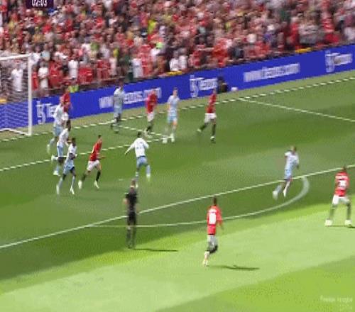 曼联球员也曾有过“计划通”的高智商时刻,2023年足总杯,桑乔就上演了天才的戏码。面对绝佳机会,他犹豫调整后一脚射门,瞬间点燃火药桶。裁判对富勒姆连掏三张红牌,比赛悬念瞬间蒸发。这脚“一计害三贤”,堪称球场魔法攻击。