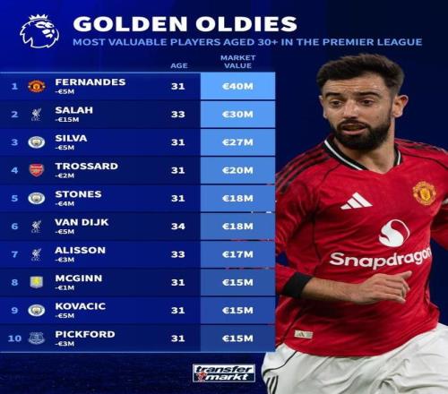 12月9日,德国转会市场更新了英超球员的最新身价,随后,他们列举了英超联赛中30岁以上身价最高的球员排行榜。