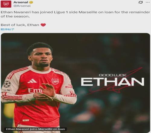 官方:阿森纳宣布恩瓦内里租借加盟马赛直到本赛季结束。