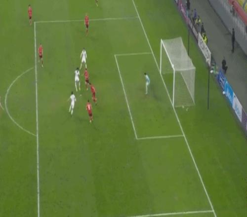 比赛的第46分钟,杰梅恩-良近头球冲顶被蹇韬飞身封出。