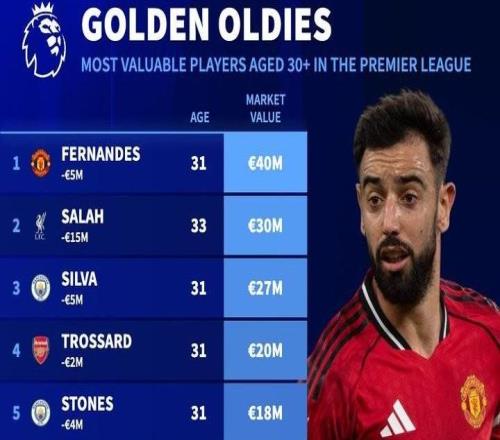 德转列英超30+岁球员身价榜:B费4000万欧居首,萨拉赫第二